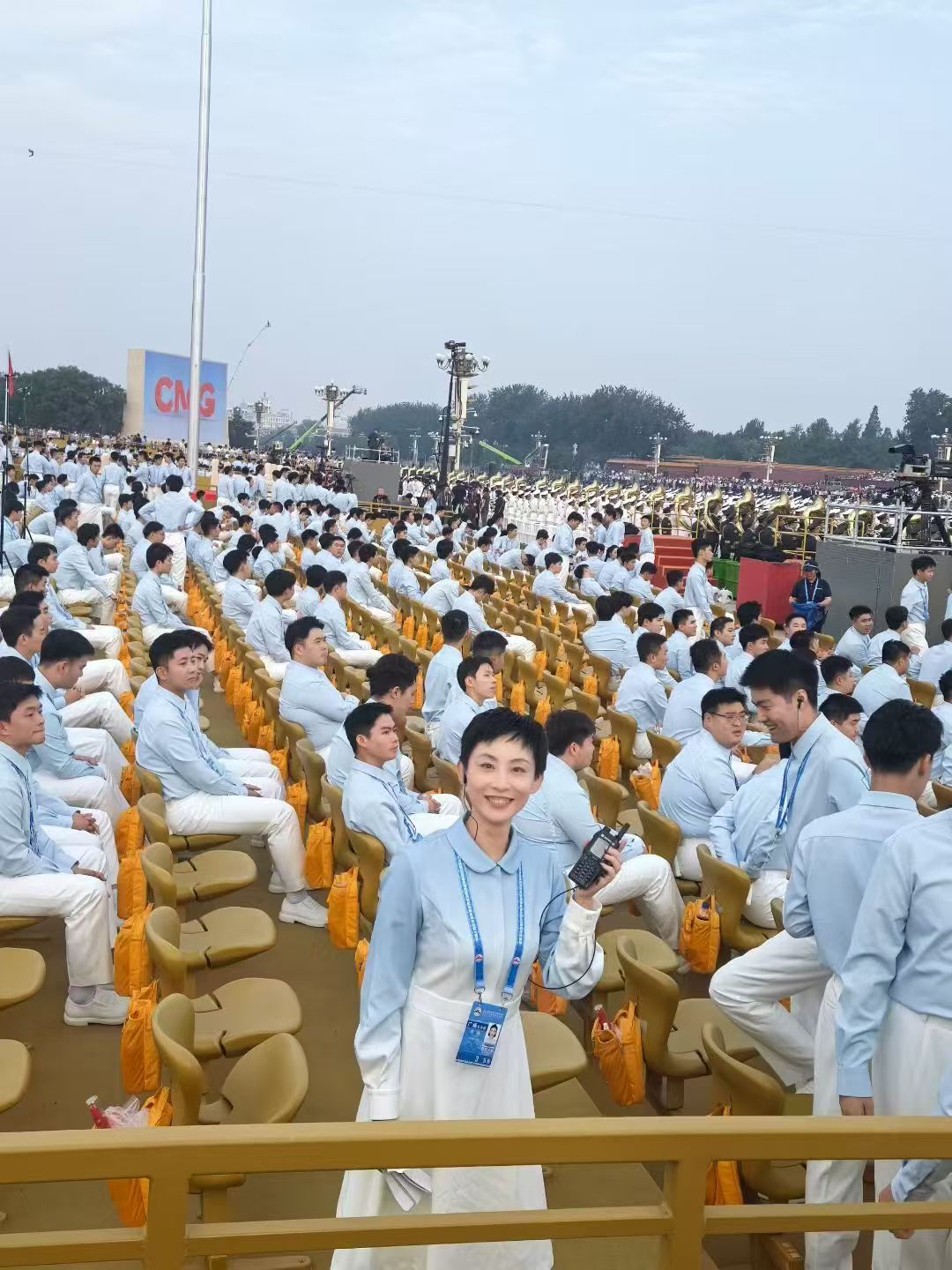 荣幸能以合唱团带队教师的身份参与这场意义非凡的大型活动,赓续传承红色精神。活动中,我是训练质量的“把关者”,用专业知识协助指导老师抠细节、提水准;是学生需求的“倾听者”,让同学们专注排练无后顾之忧;是团队精神的“凝聚者”,发挥思政工作优势,在高强度训练中筑牢大家的信念之基。当《歌唱祖国》的旋律在长安街响起,我们用辛勤付出换来“零失误”的完美呈现,那一刻,我深切体会到:教育者的荣光,不仅在三尺讲台,还在与学生共同奔赴家国使命的征程中。蓝图绘就风正劲,乘风破浪再出发。纪念活动已圆满落幕,我会将这份荣光融入美育思政实践。勿忘初心,祝福伟大祖国繁荣昌盛!