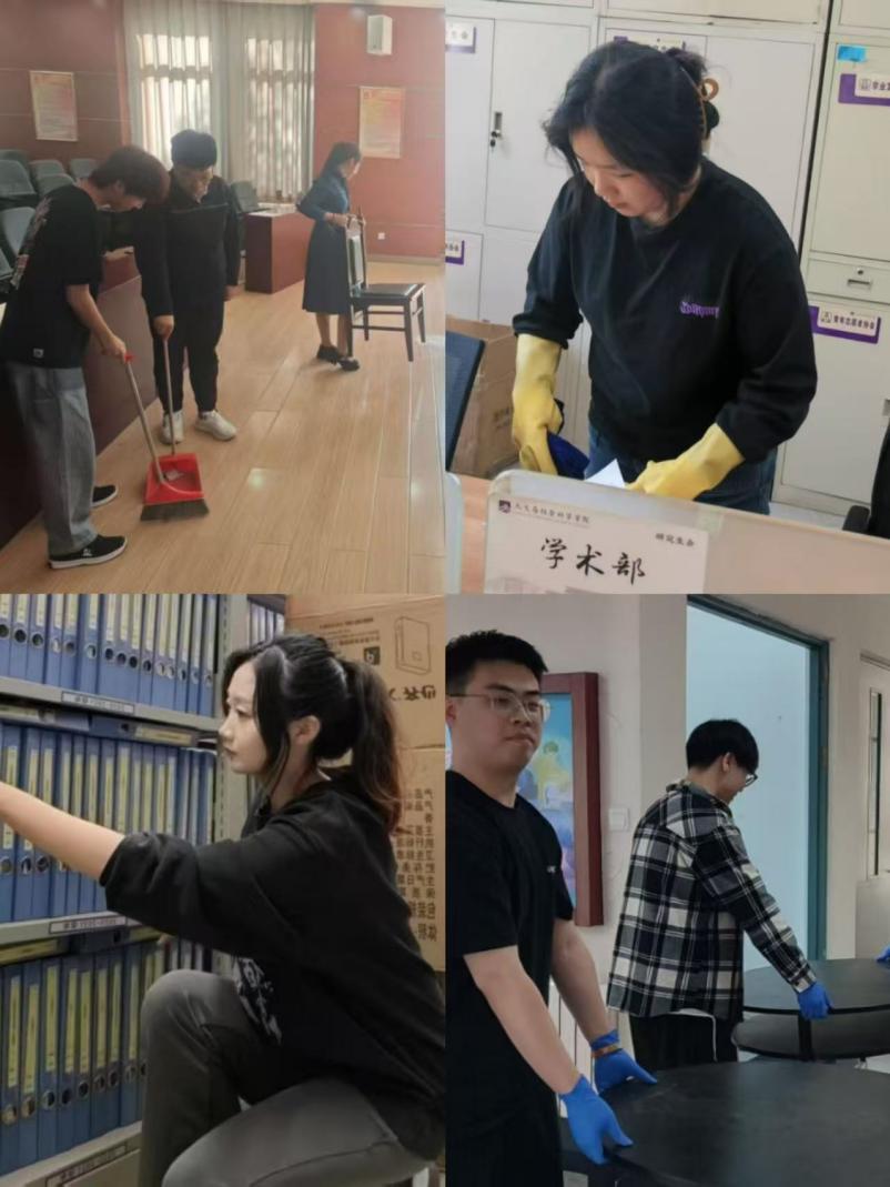 活动当天,同学们分组对模拟法庭、社工实验室、语音实验室及学院库房等区域进行了全面细致的清洁打扫。大家分工明确、协作有序,不仅对地面、桌椅、设备等进行深度清洁,还对室内物品进行科学整理收纳,用实际行动践行劳动精神,营造出整洁有序的学习实践环境。此次活动将劳动教育与专业实践场景相结合,既强化了学生的劳动素养,也为学院教学环境优化贡献了力量。