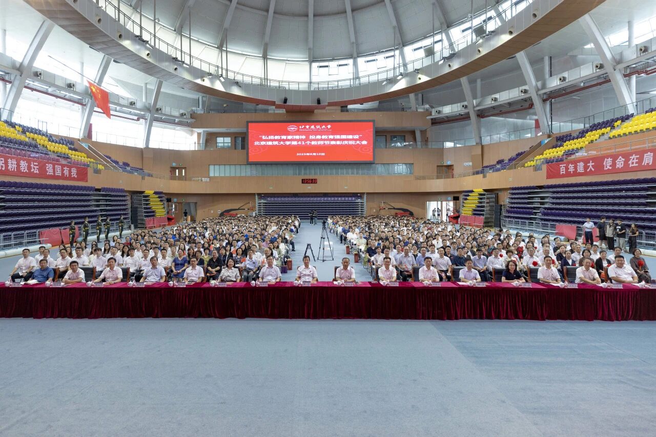9月10日下午,“弘扬教育家精神 投身教育强国建设”北京建筑大学第41个教师节表彰庆祝大会伴随着庄严的国歌声在大兴校区综合体育馆隆重举行。