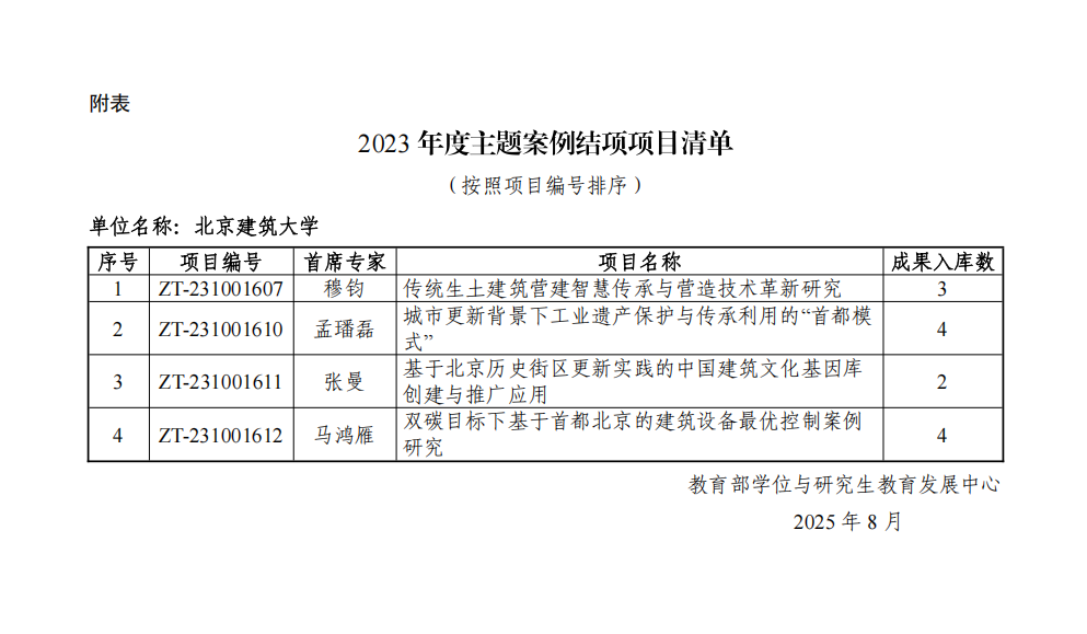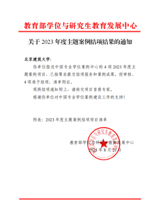 本次结项的案例围绕“中华传承”和“区域协调发展”两个主题展开,项目涵盖了传统生土建筑营造智慧传承与营造技术、工业遗产保护与传承、中国建筑文化基因库创建与推广应用、建筑设备最优控制等多个领域,案例成果将在中国专业学位案例教学服务平台(https://case.cdgdc.edu.cn/)面向全国高校进行展示和推广,为各高校及教师开展案例开发、案例研究及案例教学提供参考与借鉴。