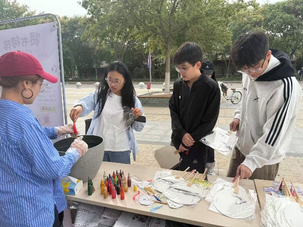传统漆扇制作区更是人气爆棚,成为师生争相打卡的热门区域。参与者以大漆为墨、以扇面为纸,让古朴的漆扇焕发出青春的活力,也成为这个秋天里一道独家的绚丽记忆。