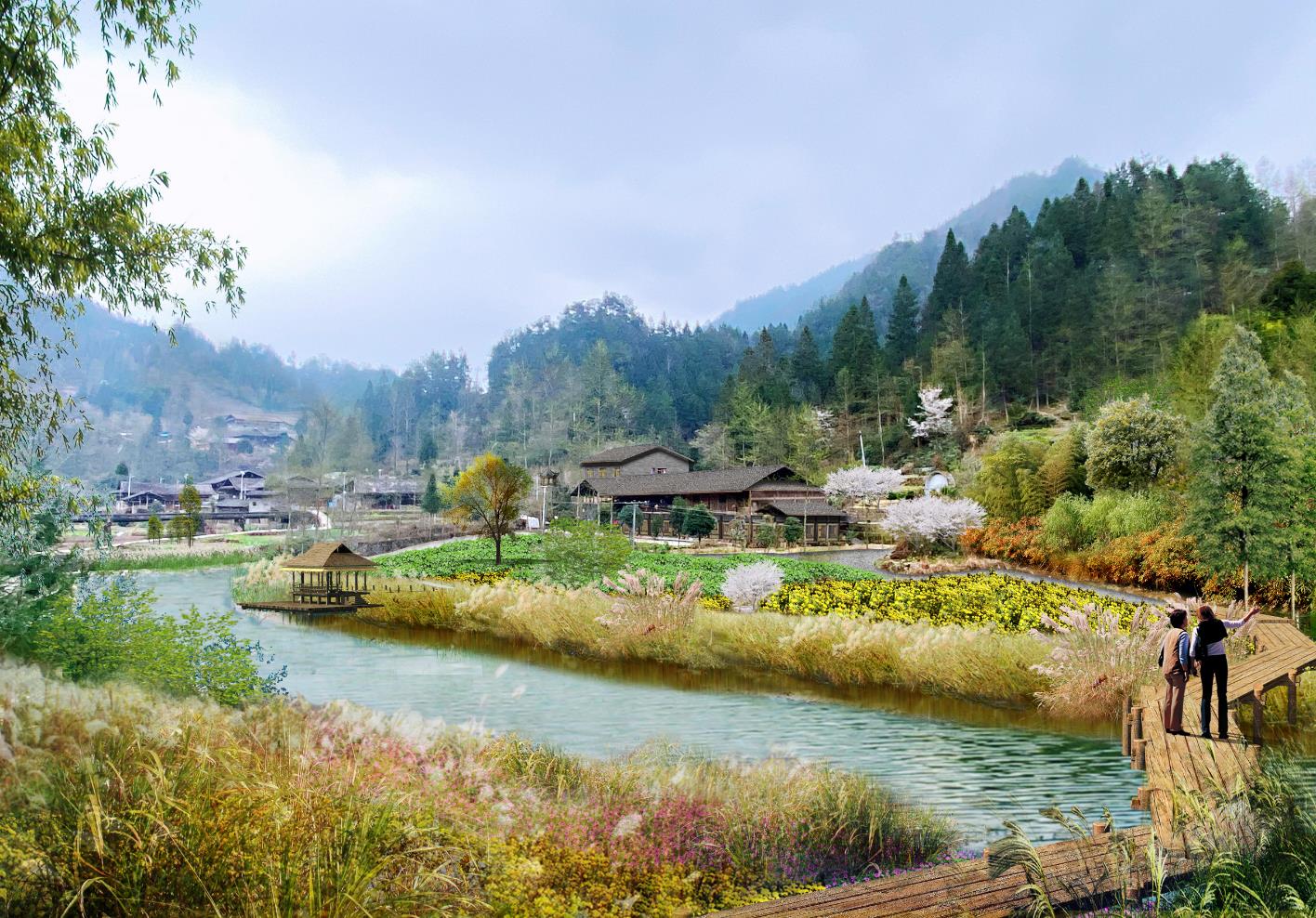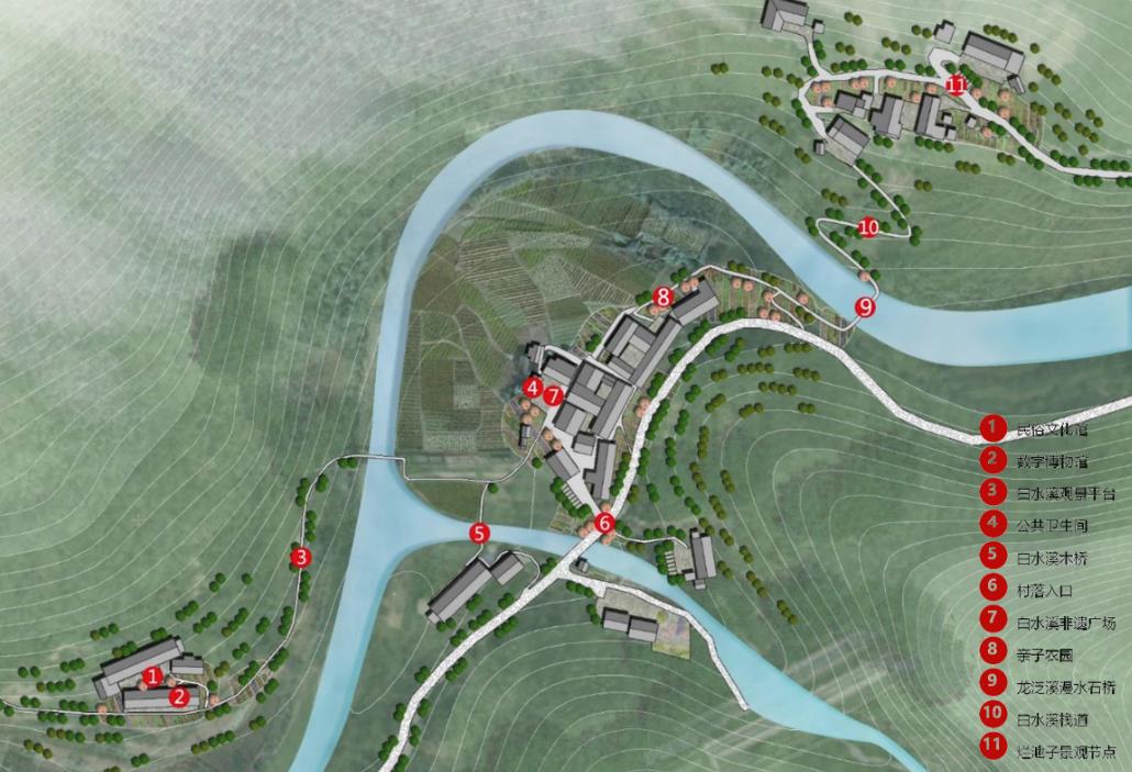 传统村落的复兴根本之道来源于对“传统文化”与“乡村振兴”的深刻认识,村庄规划坚持拓展“脱贫攻坚”成果同“乡村振兴”有效衔接。以打造最具土家韵味的避暑休闲传统村落,感受最亲切真诚渝东南乡居乡愁,传承土家传承聚落历史变迁的印记为目标,团队进行了方案总体规划设计、产业规划指引、传统建筑设计、环境专项设计以及基础设施专项设计。团队通过美好生活共同缔造解决白水溪“保护难”“发展难”的问题,村落保护与发展、绿水青山、山居乡愁与美好生活共同缔造,让村民的获得感、幸福感、安全感更加充实。
