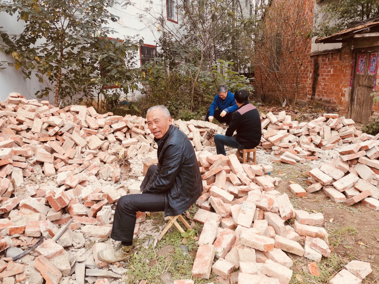 晏岗老街,在驻村工作组技术指导下,晏岗组成立了建筑施工理事会,村民作为施工主体,以因地制宜、变废为宝的实施理念进行施工。
