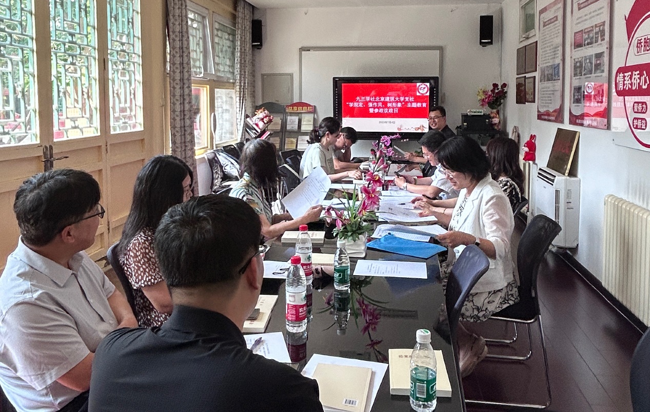 2025年7月4日下午,九三学社北京建筑大学支社在大兴校区民主党派活动室召开“学规定、强作风、树形象”主题教育暨参政议政日工作会。会议由支社委员宫永伟主持。