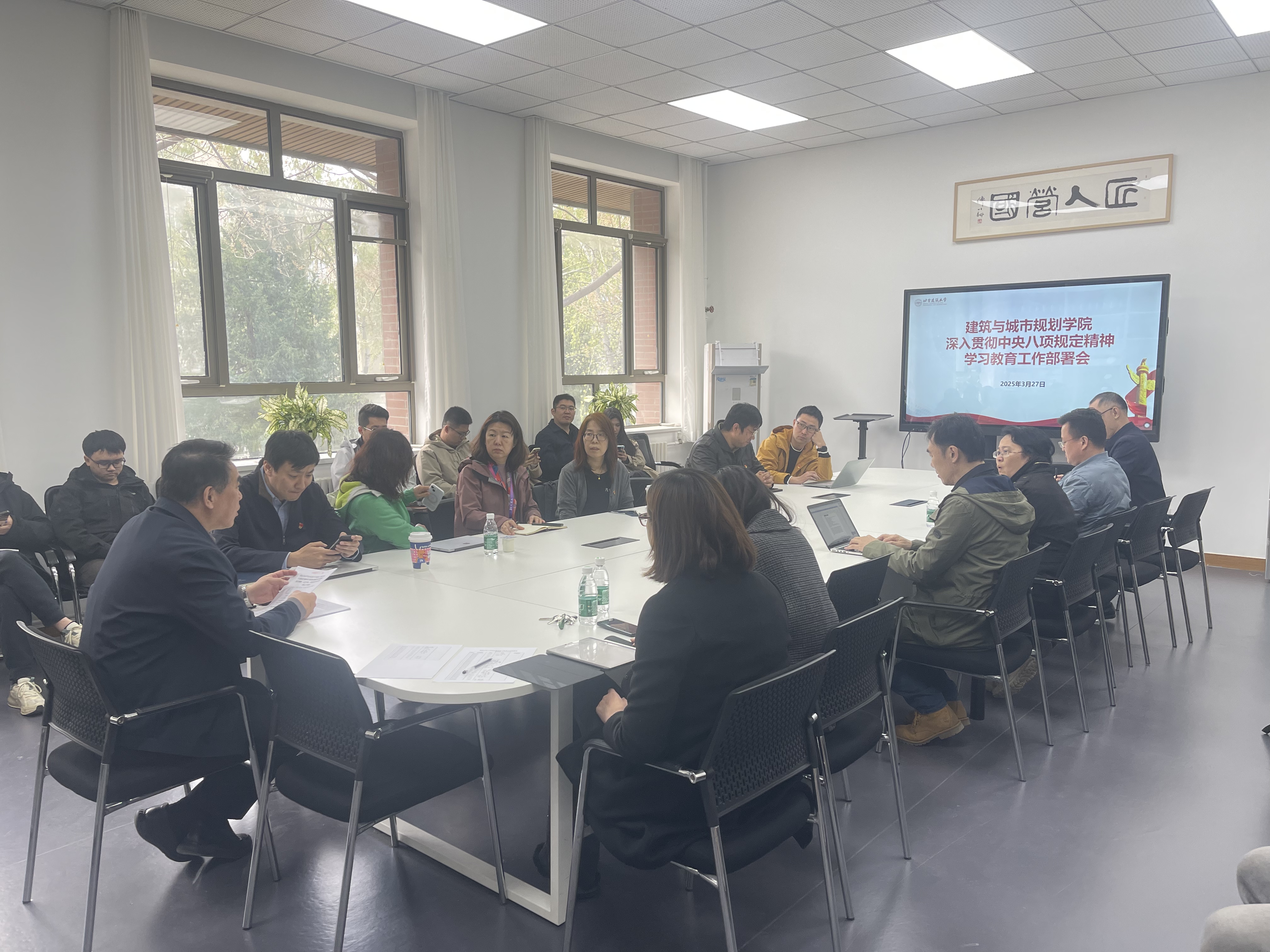 3月27日,建筑与城市规划学院召开深入贯彻中央八项规定精神学习教育工作部署会,专题部署中央八项规定精神学习教育工作。学院党委委员、处级干部、专职组织员和全体党支部书记参加会议,会议由学院党委书记何立新主持。