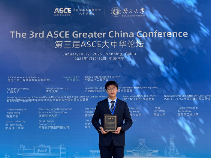 通过他一年的耕耘,asce-bucea逐渐成为一个初具影响力的社团组织,并获得了诸多成果。2024年9月,asce-bucea社团获得美国土木工程师协会认可,正式成为asce学生分会的一员。郑亮也因为在社团中的杰出贡献,获得了asce大中华地区颁发的“学生领袖奖”。