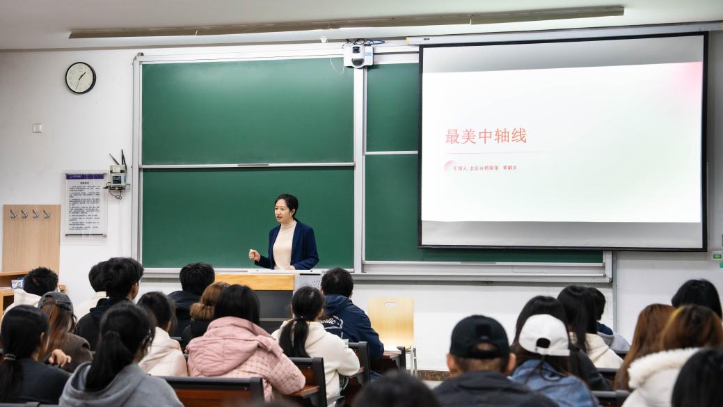 10月22日,北京市档案馆讲解员走进校园为学生们带来了一场生动的中轴线主题传统文化讲座。讲解员周赛源老师从北京中轴线的演变和发展、中国礼仪秩序象征和建筑精雕细琢技艺等多个方面介绍了北京中轴线上的代表性建筑,以及建筑相关的历史人文知识,对北京中轴线的文化内涵进行了深度阐释。土木学院、人文学院和理学院近百名学生共同聆听了讲座。