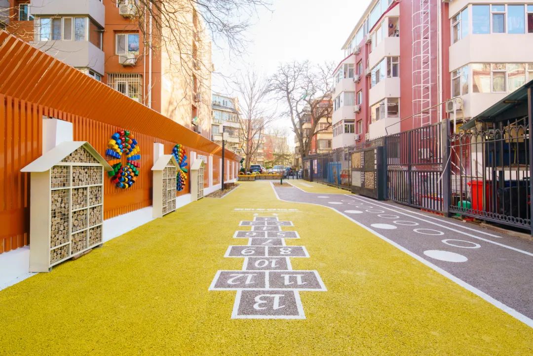 “冠馨小筑”位于冠英园西区22号楼南侧,因中心一处燃气站占据大部分空间,利用率极低。2024年上半年,经过社区及责任规划师共同努力,共收集到约970条有效意见,入户走访约290条,充分将居民的想法与需求融入改造规划之中,最以“儿童友好”为改造主题,保留场地原有植被,融入低干预的生态设计,打造出适应不同年龄层次的儿童、青少年的多功能活动区域。通过运动设施、互动景观及趣味铺装,将空间转化为承载城市记忆与儿童成长的乐园。